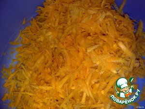 Далее снова морковь вторую треть, остаток рыбы и лука. Последний слой моркови