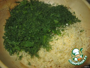 Соединить все ингредиенты, добавить измельченный чеснок, посолить, заправить майонезом.