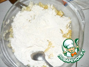 Добавляем 5 ст.л муки,хорошо перемешиваем.