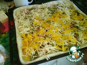 И наконец все засыпать сыром, желательно побольше, и поставить в духовку, разогретую до 200 гр. Печь до готовности.