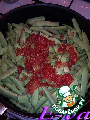 Увидела этот рецепт из турецкой кухни в одном журнале, очень понравился. Вырезала, приклеила в свою поварскую книжку (не смейтесь, это очень удобно). С тех пор, как только начинается сезон молодой зеленой фасоли, готовлю это блюдо своим домашним. Уже намного позже попробовала оригинал блюда на отдыхе. На мой взгляд, получается очень похоже, но у меня более диетическая версия. Попробуйте, это вкусно и сытно. А самое главное, не трудно. Тем, кто начинает готовить и пришeл на этот сайт научиться, стоит обратить внимание.