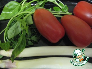 Ингредиенты для «Куриный террин с томатами, спаржей и базиликом»: