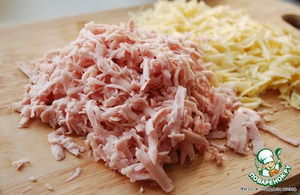 В глубокой миске смешать лук, чеснок, шпинат, творог, ветчину, сыр, муку, яйца и оставшиеся макароны. Посолить, поперчить по вкусу.