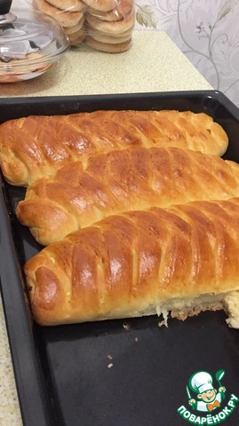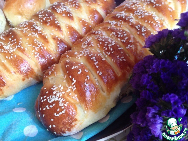 Теперь смазываем их разболтанным яйцом и в духовку со средним огнём на минут 30-40. Первые 20 минут духовку не открывайте, а то тесто осядет!