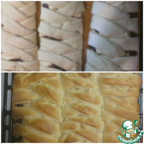 На след.день готовила из первой половины. Начинка та же, плетенки подошли за 1 час даже лучше, чем вчера.