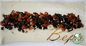 На каждую полосу выложить начинку. Края полос соединить, защипать. -