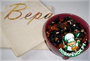 Сухофрукты промыть, мелко нарезать. Орехи мелко нарезать.