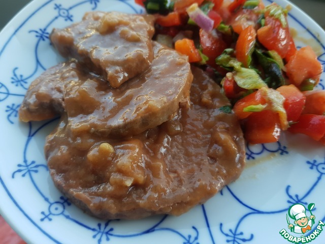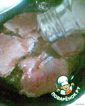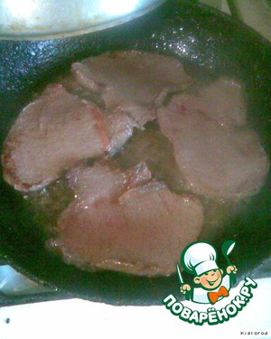 После короткой обжарки мясо солят, перчат, а затем жарят на небольшом огне до полной готовности