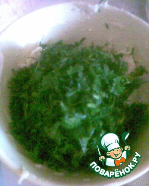 Зелень вымыть и обсушить, чтобы на ней не осталось воды, а затем мелко порубить ножом