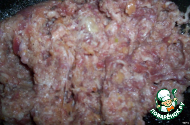 - приготовить фарш: мясной фарш + батон + лук + яйца + майонез + перец + соль (чуть-чуть), тщательно перемешать