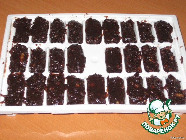 Через указанное время достать из морозилки, аккуратно вытащить каждую конфетку из формы. Конфеты готовы!