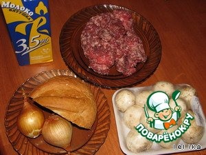 Захотелось что-то мяса с грибочками, а в холодильнике только фарш. Вот и решила сварганить нехитрое блюдо. Может быть кому-нибудь и сгодится мой рецептик, а так на новизну не претендую.
