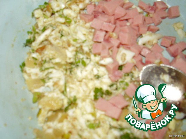 • И добавить к начинке оставшейся от зраз рубленых, перемешать