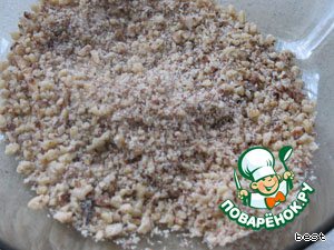 Орехи измельчить в блендере. -