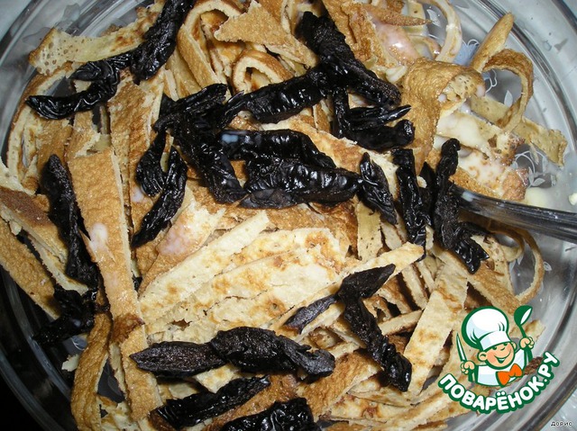 Полосочками режем пропаренный чернослив