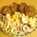 На гарнир у меня мыла цветная вермишелька с салатиком.