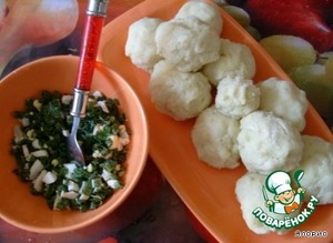 Из картофельного теста формируем шарики для пирожков, у меня их получилось 9 шт. Откладываем немного теста для творчества.