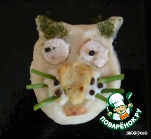 Глазки оформляем перчиком, ушки припудриваем сухим укропом или петрушкой, что есть под рукой из приправ.