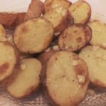 Сливаем картошку и выкладываем в разогретую духовку на решетку. Я готовлю в газовой духовке, только с нижним огнем, поэтому слежу, когда снизу картошка покрылась золотистой корочкой - переворачиваю. Когда вся картошка покрылась корочкой, выкладываем обратно в кастрюлю, добавляем масло (чем больше, тем вкуснее) и чеснок (либо мелко нарезанный, либо помятый в чесночнице). К такой картошке подойдет любое дополнение.