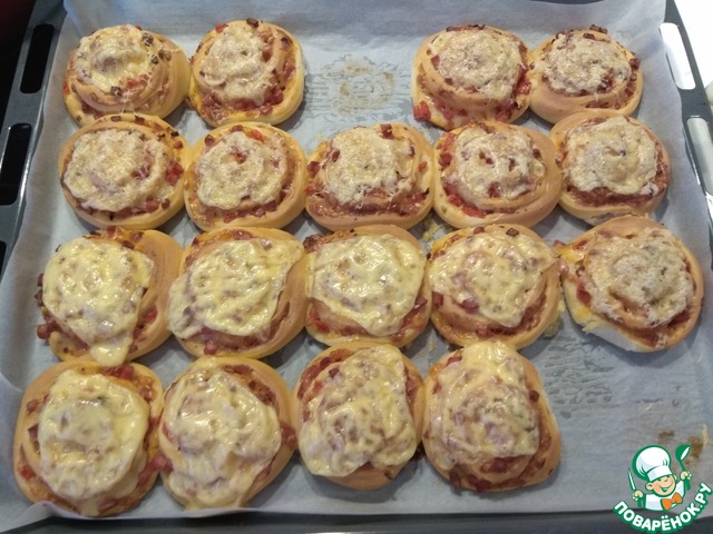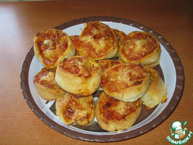 Пиццовые пирожки "ушли на ура". Как дополнение, основу смазала соусом для пиццы.