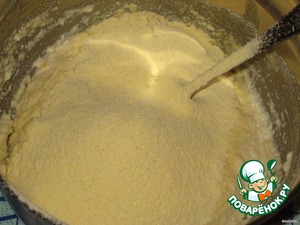 Затем всыпать кукурузную муку и опять перемешать.