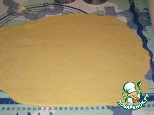 Раскатать его в прямоугольный пласт, толщиной 0,4-0,5 мм.