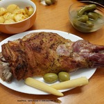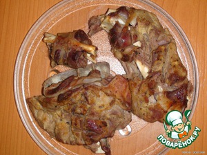 Извлекаем мясо из духовки, освобождаем от запекательной тары...