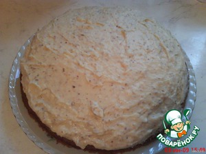 Взбить белки с оставшимся сахаром и выложить на желтковую массу.
