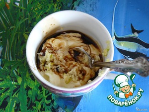 Готовим соус: смешиваем майонез, соевый соус и чеснок.