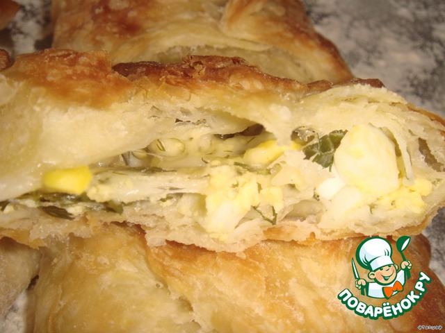 Рецепт «Слойки с яйцом, сыром и зеленью»:
