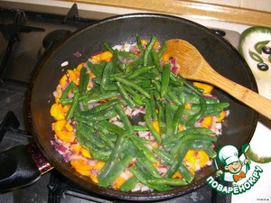 • затем фасоль, я нашла в морозилке и решила добавить, но можно и без нее