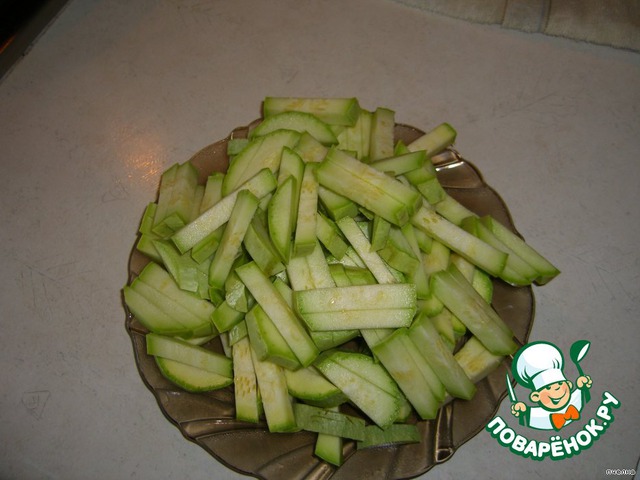 затем кабачки режем соломкой, но не сильно мелкой, а то при жарке станут кашей