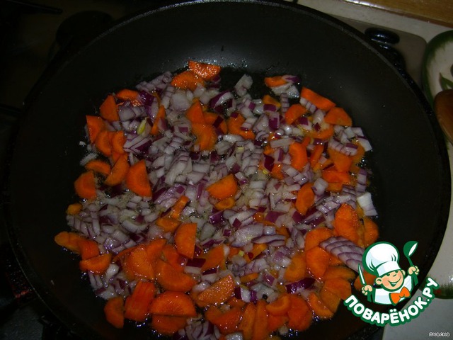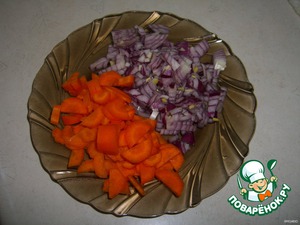режем лук и морковь, если не большая то полукольцами, если крупнее, то соломкой