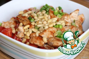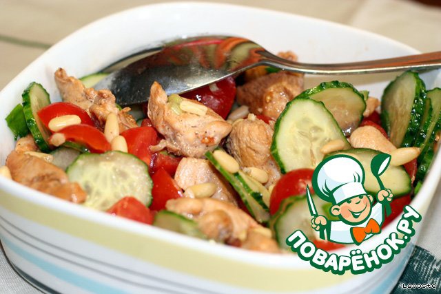 Салат из овощей с куриным филе и кедровыми орешками - отличный вариант для легкого ужина.