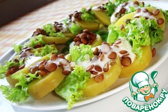 Посыпать орешками и мелко нарезанным зеленым луком. Перемешать.