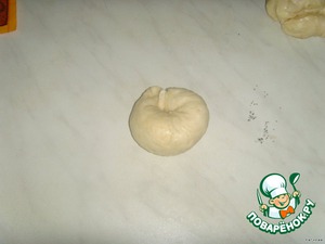 а теперь начнем лепить наши вкусняшки,для этого разомнем каждый кусочек в лепешку.
