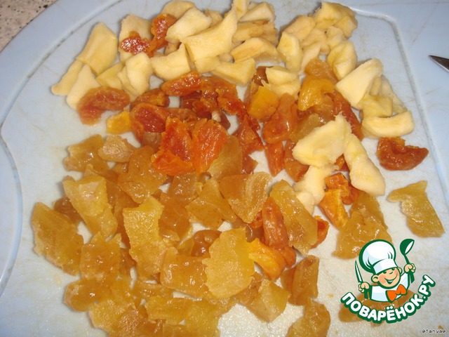 Сухофрукты порезать на кусочки небольшие.