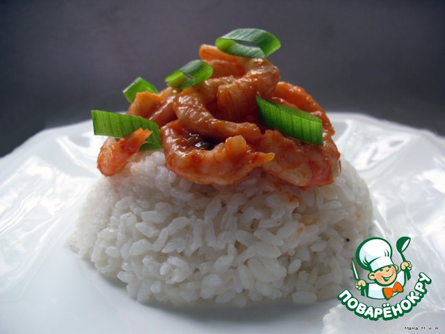 Выкладываем соус, размешиваем так, чтоб он покрывал всю поверхность креветок, тушим до загустения. Это занимает около минуты. Поверхность креветок должна быть глянцевой. Снимаем с огня.