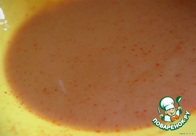 В маленькой емкости смешать воду, кетчуп, соевый соус, мед, перец и имбирь (перец регулируем – получается остро).