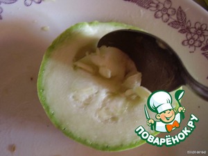 Ложечкой аккуратно вынимаем серединку, оставляя тонкое дно.