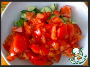 Пока мясо маринуется, готовим салат, который я использовала в качестве гарнира.