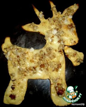 Из каждой части вырезаем будущую козочку и колокольчик. Убираем в разогретую духовку на 20 минут.
