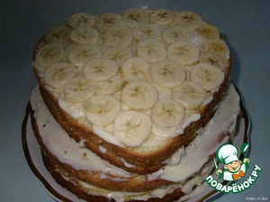 • Затем второй корж-крем-апельсины-крем-бананы-крем.