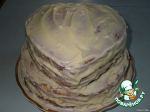 • Кладем последний круглый корж и хорошо смазываем его кремом.
