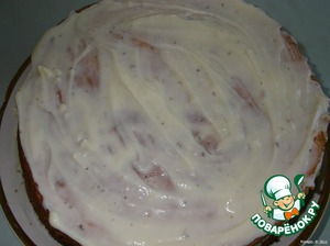 Кладем последний круглый корж и хорошо смазываем его кремом.