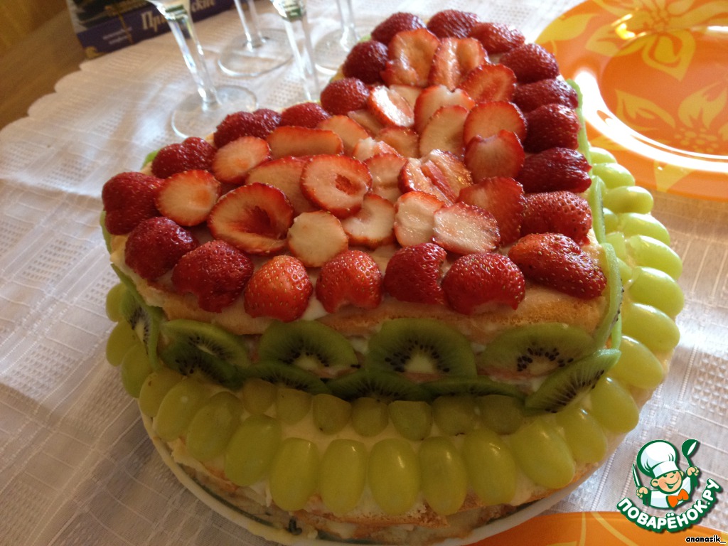 Рецепт «Бисквитный торт с фруктами "Для любимой дочери"»: