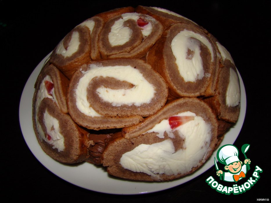 Корзинку наполняем взбитыми сливками (сливки 35%+сахар по вкусу,а можно воспользоваться покупными) с помощью кулька или шприца.