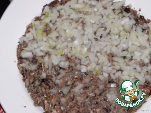 Шпроты (без масла) раздавить вилкой – это первый слой. На шпроты очень мелко нарезанный лук, если лук очень горький – ошпарить его кипятком. Сверху полить майонезом (не очень много).