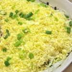 Дальше слой белка, на белок натереть замороженное масло, далее - слой сыра, полить майонезом (слои не нужно приминать, поэтому лучше использовать майонез с дозатором). Все засыпать яичным желтком и в холодильник на часик.