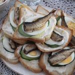 Такие бутербродики практически всегда на праздничном столе в нашей семье. Вкусно, сытно! Поменяла порядок раскладки, по-моему удобнее есть, если сначала огурец, яйцо, а уж потом шпротинка. Сегодня не было укропа, хотя обычно добавляю его к майонезу.